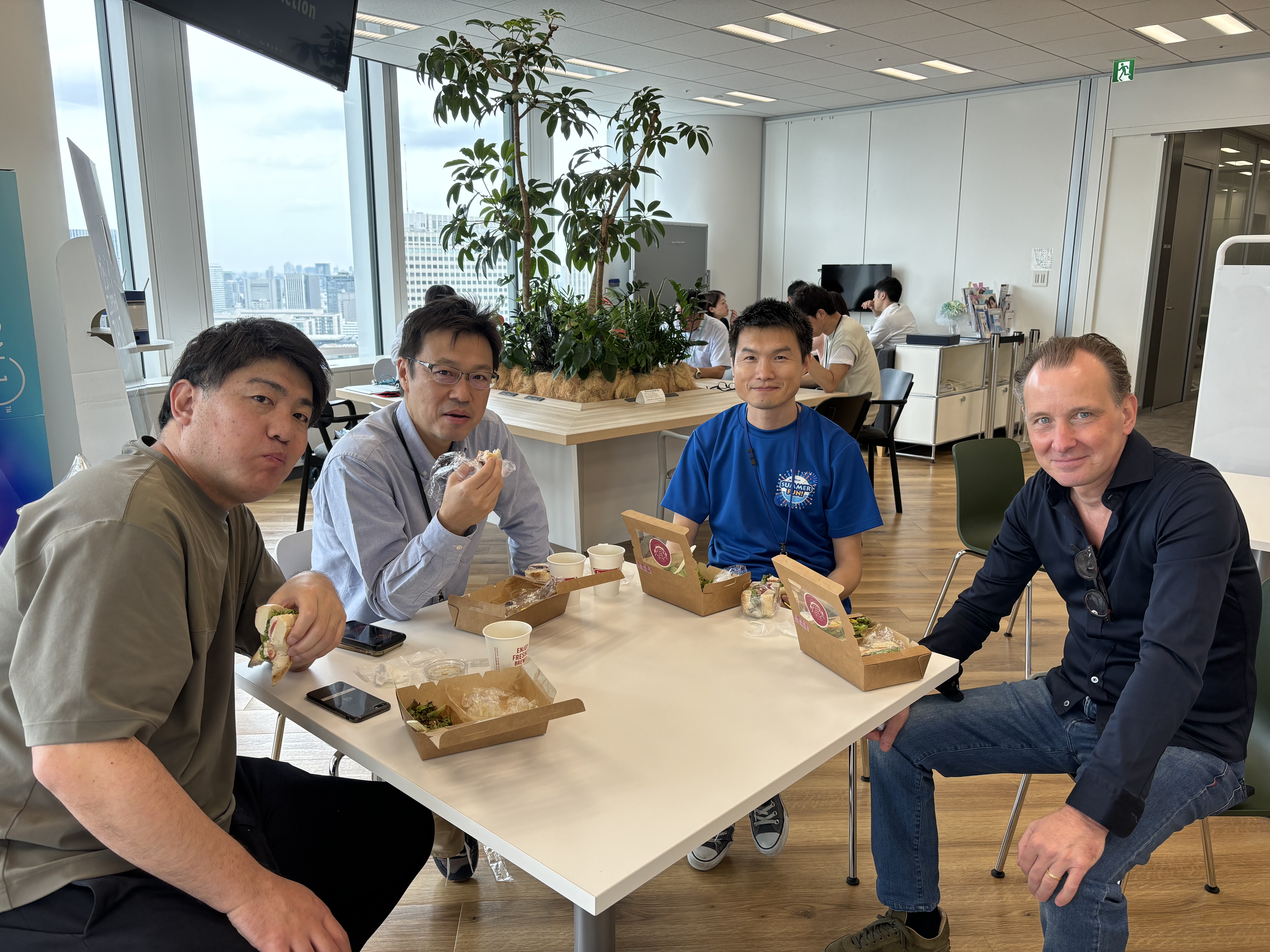ごみ拾い活動の後は、オフィスのラウンジスペースで、参加者に朝食とコーヒーがふるまわれました。