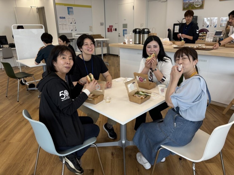 和気あいあいと朝食を共にする日本アルコン従業員からは、こんな感想が。