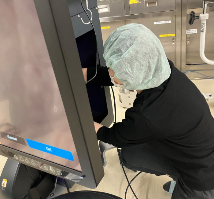 技術部は、一部の専任の技術担当がいる機器以外はすべての製品をカバーします。 そのため、それぞれの製品知識や機械の構造・メカニズムについての深い理解が重要で、研修期間は比較的長いと思います。機械の動く原理を学ぶ機会や、マニュアルなども整っていて、学ぶ制度や仕組みの面では恵まれています。