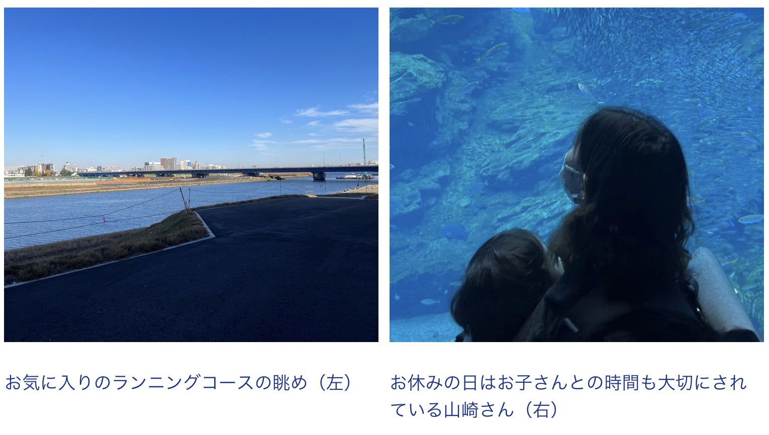 プライベートでは、帰宅してからの子どもとの時間です。夫の職場に保育園があり、送り迎えなどの対応をしてもらっているので、私が遅くなったりするとすでに寝ていることもありますが、子どもとの時間は癒しの時間です。
