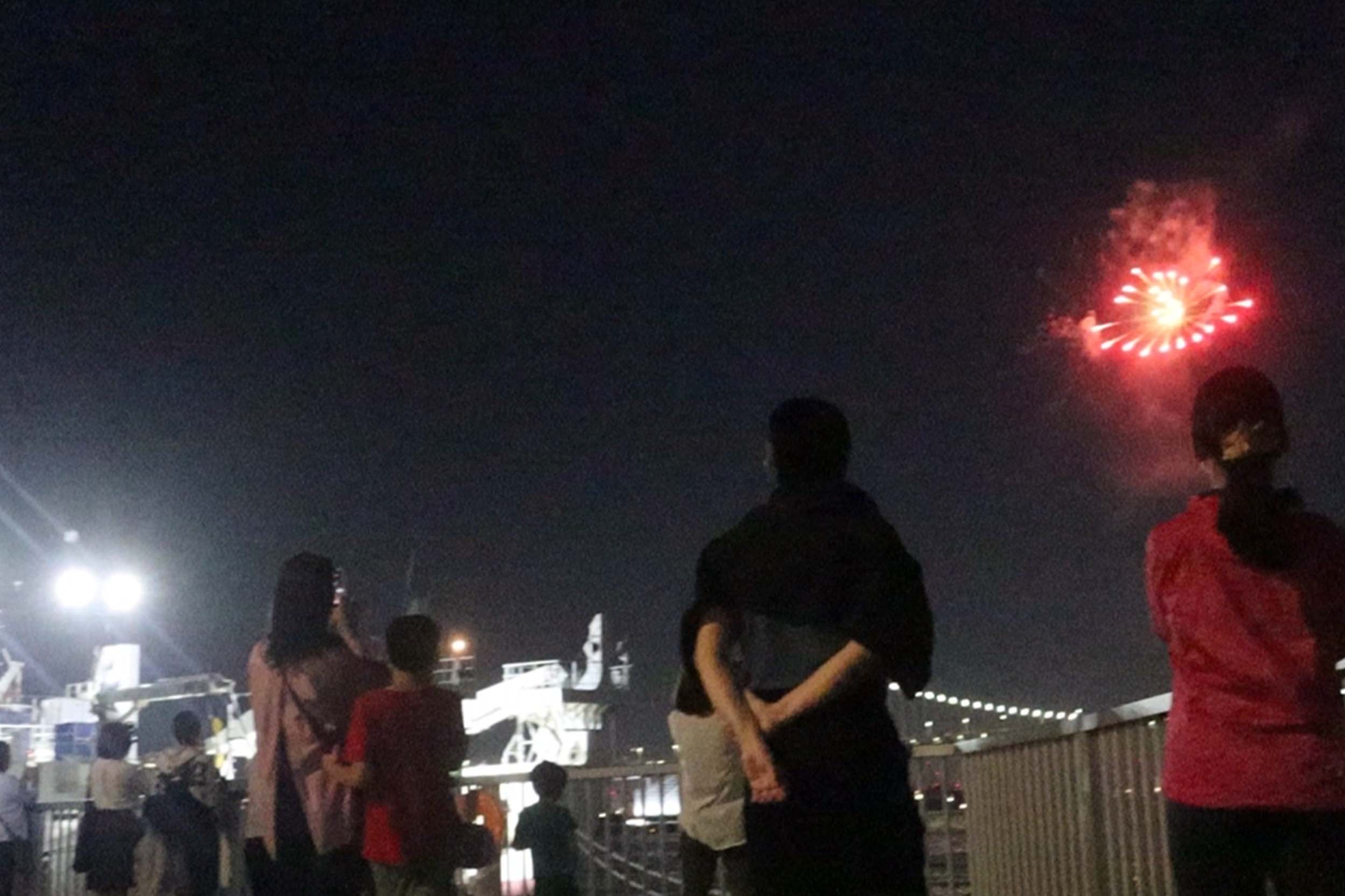 10月10日(月・祝)19時00分、東京都中央区晴海エリアの海上にて、レインボーブリッジを背景に、色鮮やかな花火が東京の夜空を彩りました。目の愛護デーにちなみ、目の形をした特注花火や、視力検査に用いられるランドルト環(Cマーク)の花火、また、「20-20-20ルール」1を連想させる「20」の形をした花火が次々と打ち上げられました。その後20分の間隔を置き、19時20分、19時40分にも、デジタルデバイスから目を離すきっかけとして、各1分間ほど同様の花火が打ち上がりました。近隣の方々、道行く方々、仕事中の方々も、ふいに打ち上げられた花火に思わず夜空を見上げ、笑顔とともにひと時の“デジタルデトックス”を体験していました。