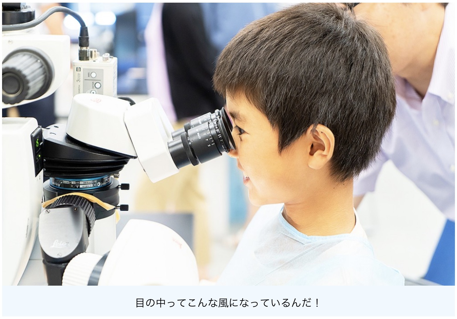 2018年8月30日、日本アルコンは、親子のための遊びの学校「原っぱ大学」と組んで、白内障手術の体験ワークショップを実施しました。子どもたちに「見えるしくみ」と「目の大切さ」を知ってもらうための半日のプログラムです。4回目となった今年は、21名の小学生を東京・虎ノ門にある、日本アルコン本社のウェットラボ(眼科手術体験スペース)にお迎えしました。