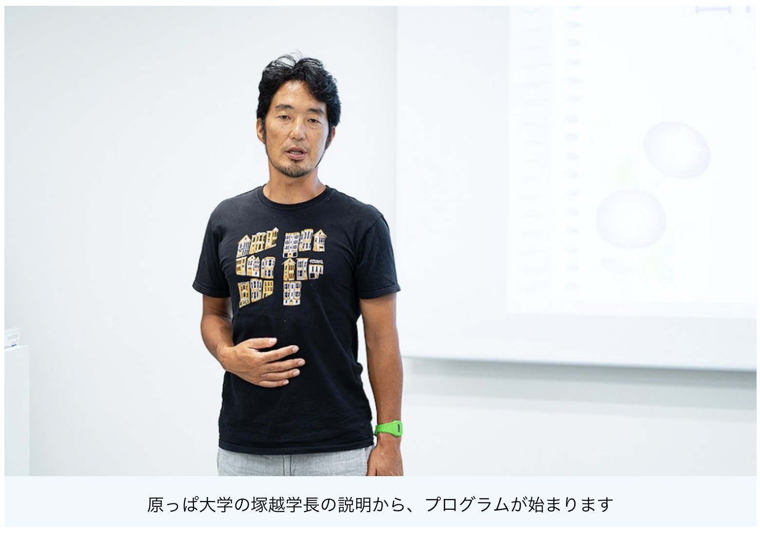 13:30 「原っぱ大学」塚越学長からワークショップの流れを説明 手術着に着替えて準備完了!
