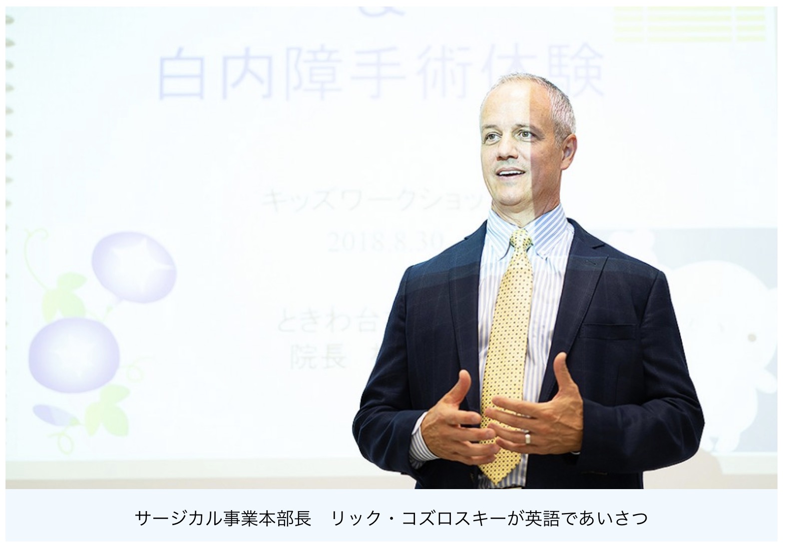 13:35 サージカル事業本部長 リック・コズロスキーが英語であいさつ