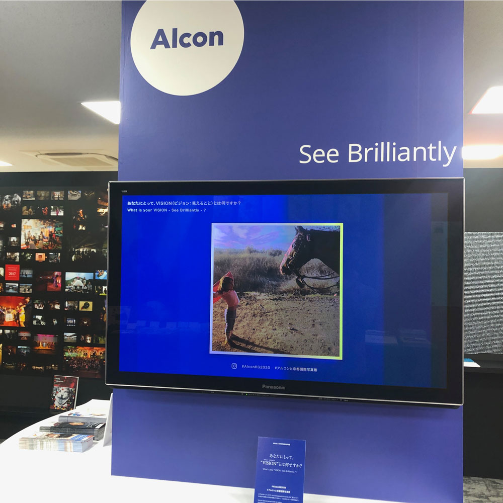 日本アルコンはKYOTOGRAPHIEとの協働プログラムとして「VISION(ビジョン:見えること)」をテーマにした写真をInstagram(#AlconKG2020 #アルコンと京都国際写真祭)で募集し、会場内のアルコンステーションのモニターに投影しました。プロアマ問わず世界各国から集まった数多くの美しい情景や人々の表情の写真は、「見えること」の素晴らしさを表現しており、来場者の方々の共感を呼んでいました。