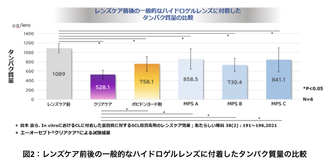 - 鈴木 崇、他. In vitroにおけるCLに付着した蛋白質に対するSCL用消毒剤のレンズケア効果;あたらしい眼科 38(2):191~196,2021(エーオーセプト®クリアケア®による試験結果)