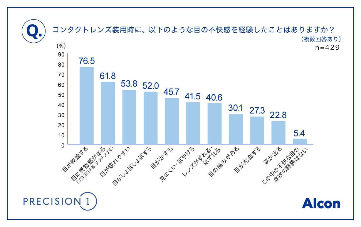 約95%がコンタクト装用による「目の乾燥感」や「異物感」を経験